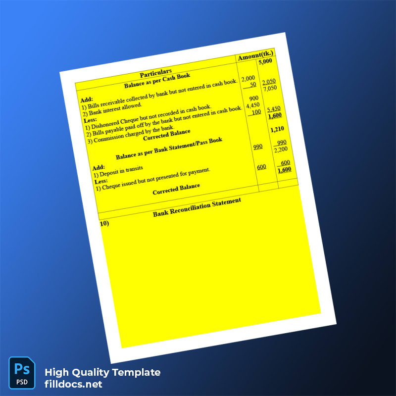 Bangladesh Bank Reconciliation Statement Template in Word and PDF Formats