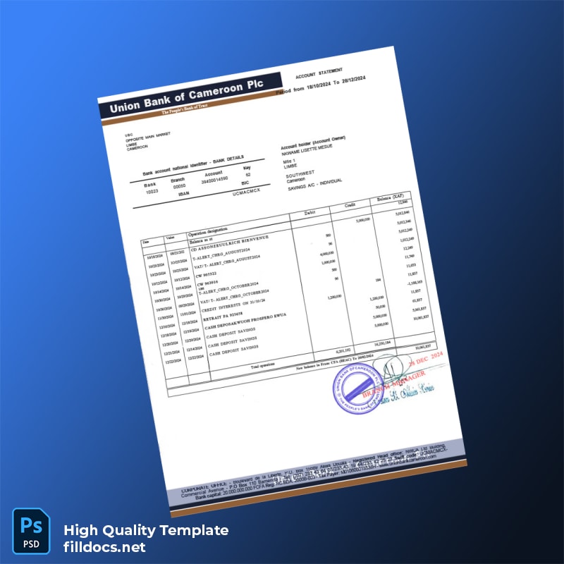 Elevate Your Professional Documents with the Cameroon Union Bank Statement Template