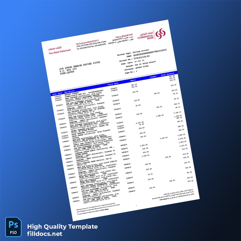 Don’t let document issues hold you back any longer! Purchase the Qatar Bank Statement Template today and regain the peace of mind you deserve.
