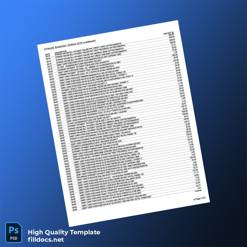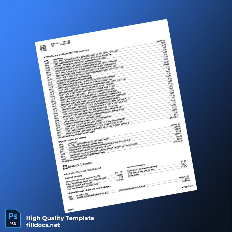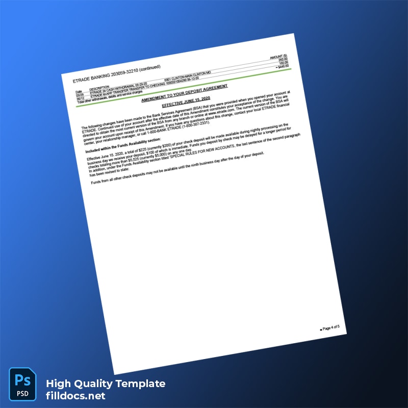 USA Etrade Bank Statement Template in Word and PDF formats 5 page