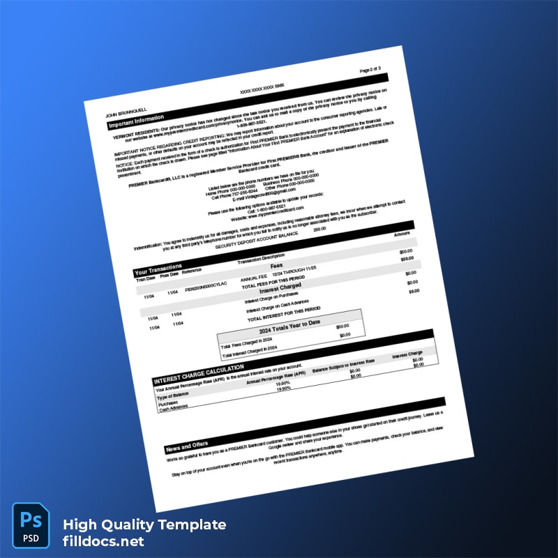 Don’t let inconvenience hold you back any longer. Get your USA First PREMIER Bank Credit Card Statement Template now and streamline your document management process today. Explore our other products such as 3 months bank statement pdf and 6 months bank statement pdf to ensure you always have the precise documentation at hand. For more information on similar offerings, visit Bank Statement Templates and discover the variety of formats available.